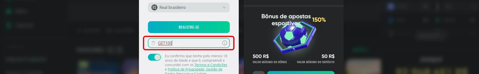Ao registrar-se agora mesmo e inserir o código promocional GET100 durante o cadastro, você receberá: