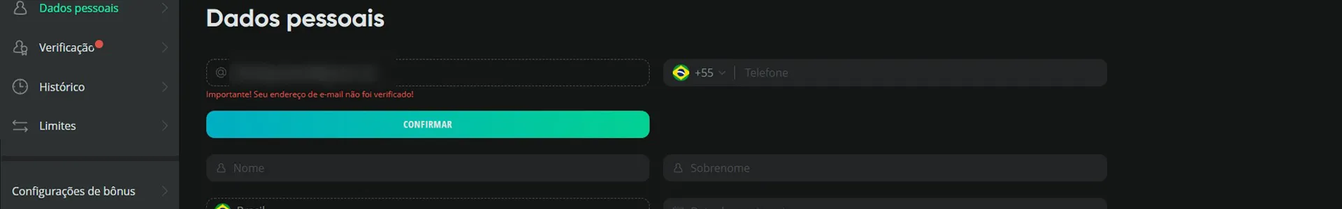 Para receber o bônus, você não precisa passar por verificação. No entanto, ela é obrigatória para o saque de fundos. Para passar por este procedimento, você deve preencher completamente o perfil e também carregar o CPF e uma selfie na área pessoal.