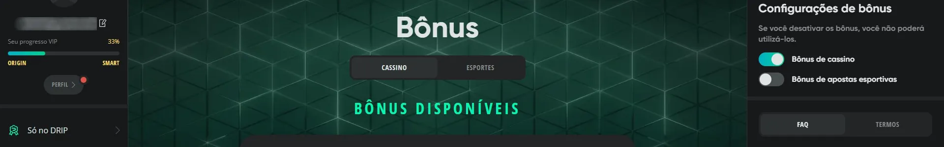 Informações-chave sobre o bônus de cadastro no cassino Drip