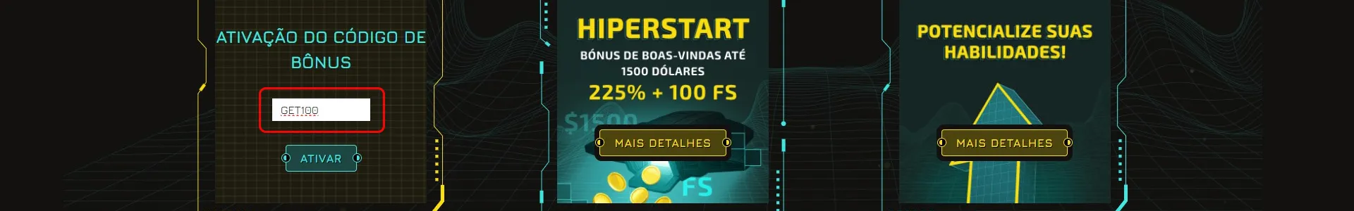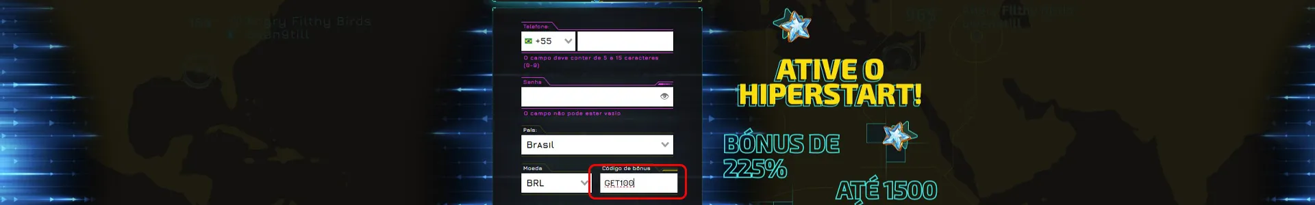 | Código do bônus | GET100 |